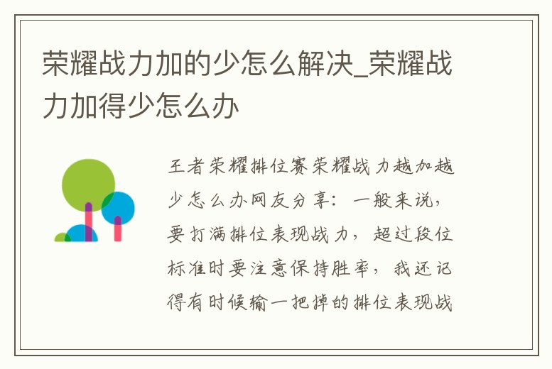 - 榮耀戰(zhàn)力加的少怎么解決_榮耀戰(zhàn)力加得少怎么辦
