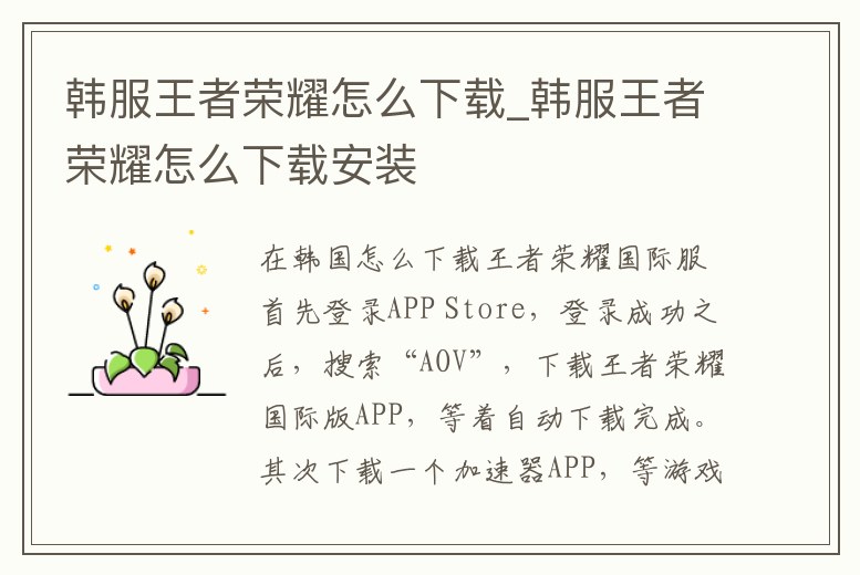 韓服王者榮耀怎么下載_韓服王者榮耀怎么下載安裝