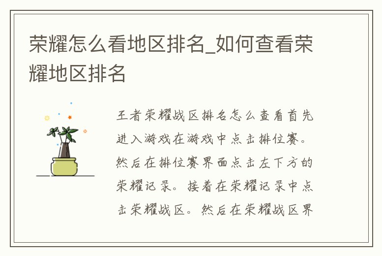 榮耀怎么看地區排名_如何查看榮耀地區排名