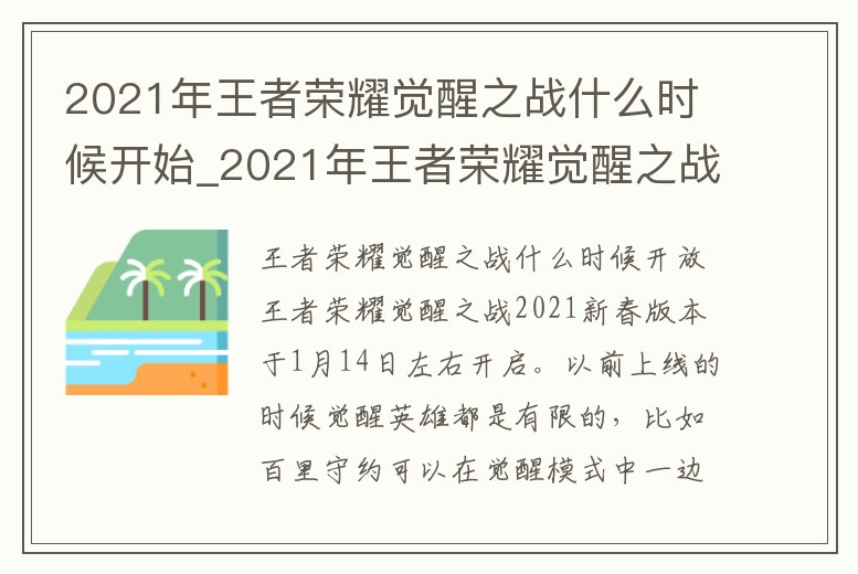2021年王者榮耀覺醒之戰什么時候開始_2021年王者榮耀覺醒之戰什么時候上線