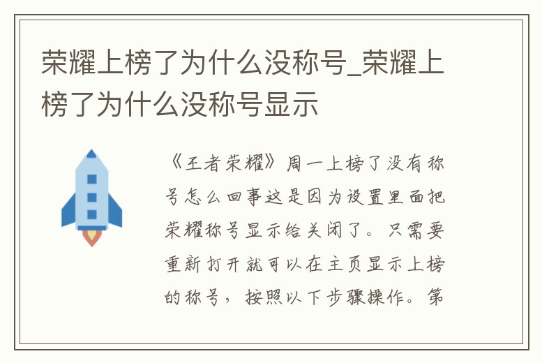 榮耀上榜了為什么沒(méi)稱(chēng)號(hào)_榮耀上榜了為什么沒(méi)稱(chēng)號(hào)顯示