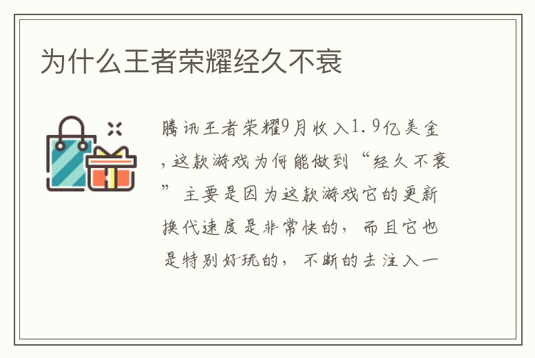 騰訊王者榮耀9月收入1.9億美金,這款游戲為何能做到“經久不衰”