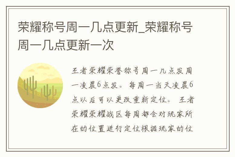 榮耀稱號周一幾點更新_榮耀稱號周一幾點更新一次