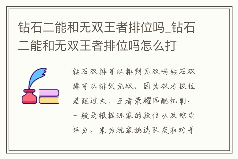 鉆石二能和無雙王者排位嗎_鉆石二能和無雙王者排位嗎怎么打