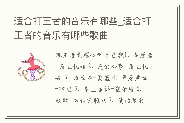 適合打王者的音樂有哪些_適合打王者的音樂有哪些歌曲