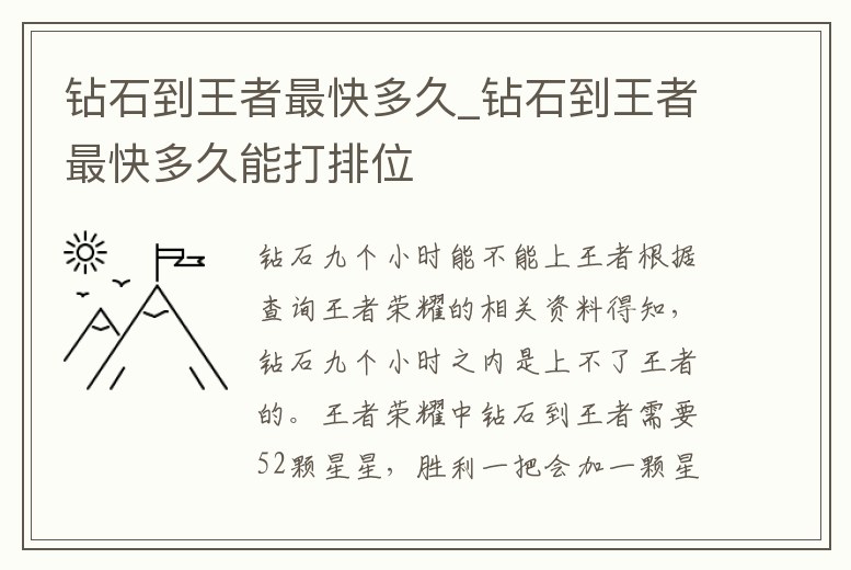 鉆石到王者最快多久_鉆石到王者最快多久能打排位