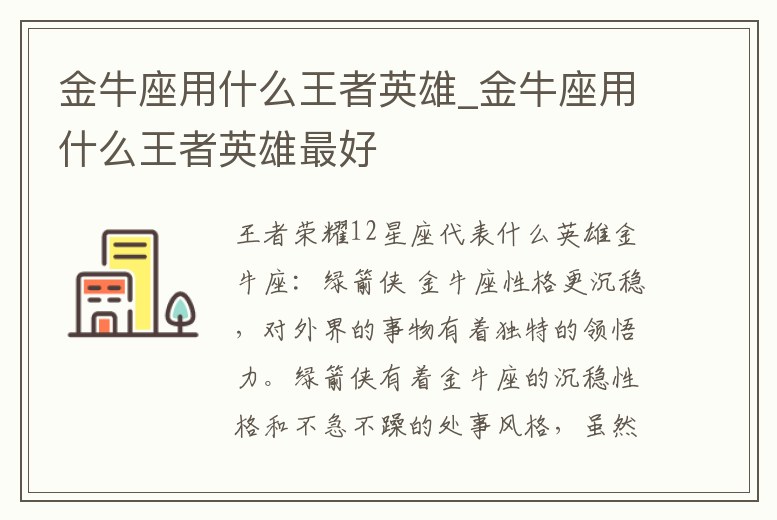金牛座用什么王者英雄_金牛座用什么王者英雄最好