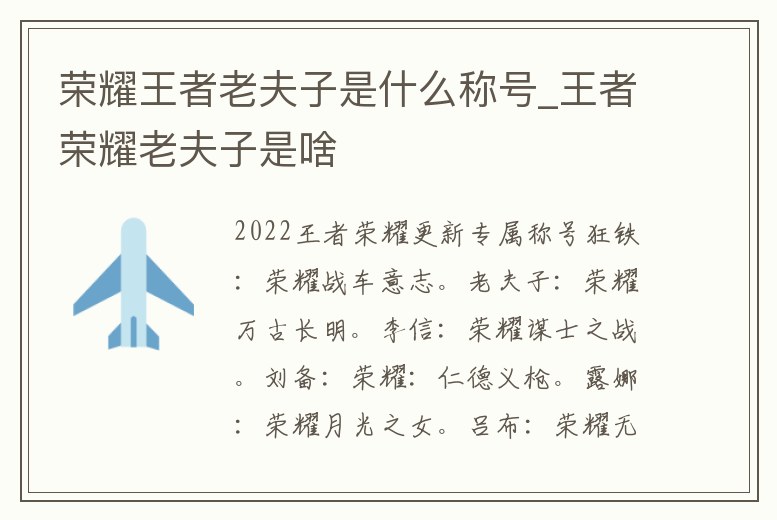 榮耀王者老夫子是什么稱號_王者榮耀老夫子是啥