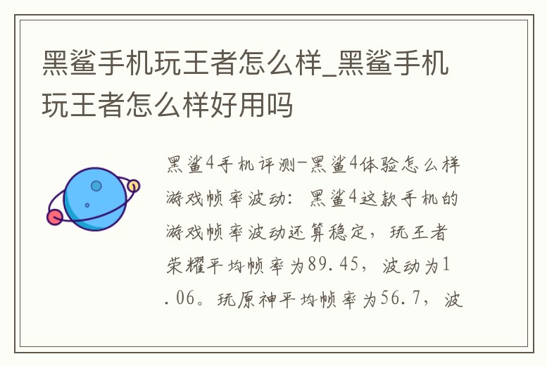 黑鯊手機玩王者怎么樣_黑鯊手機玩王者怎么樣好用嗎