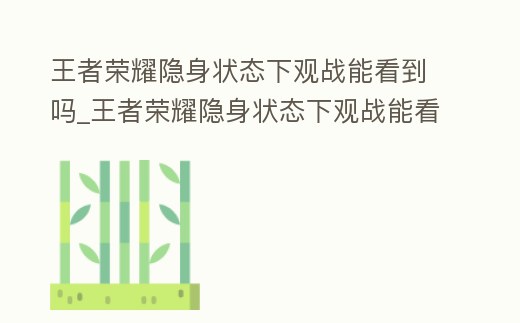 王者榮耀隱身狀態下觀戰能看到嗎_王者榮耀隱身狀態下觀戰能看到嗎蘋果