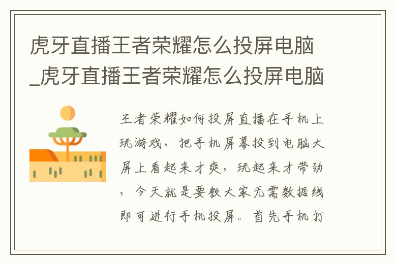 虎牙直播王者榮耀怎么投屏電腦_虎牙直播王者榮耀怎么投屏電腦版