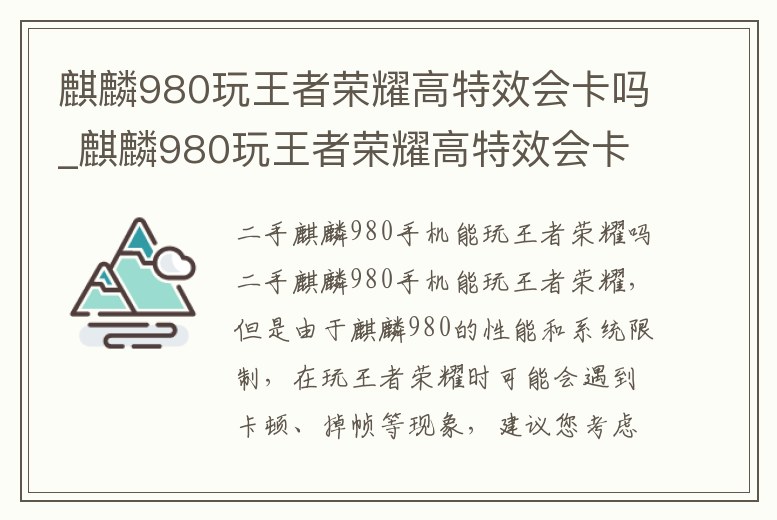 麒麟980玩王者榮耀高特效會卡嗎_麒麟980玩王者榮耀高特效會卡嗎知乎