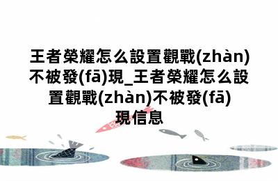 王者榮耀怎么設置觀戰(zhàn)不被發(fā)現_王者榮耀怎么設置觀戰(zhàn)不被發(fā)現信息