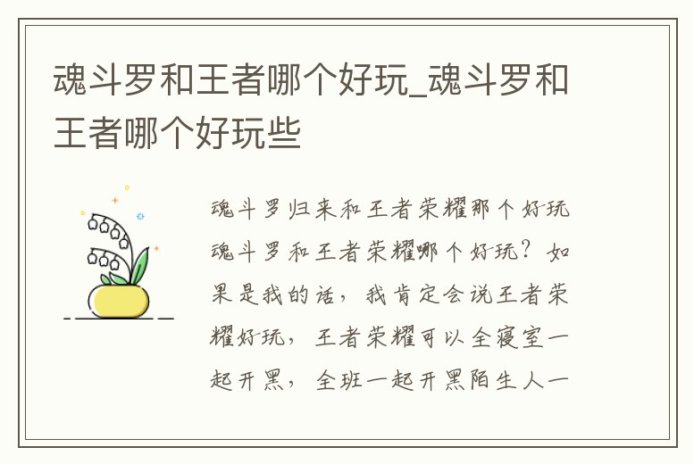 3、王者榮耀和魂斗羅歸來哪個好玩