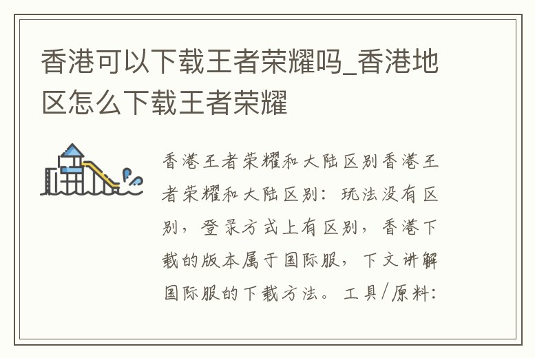 香港可以下載王者榮耀嗎_香港地區怎么下載王者榮耀