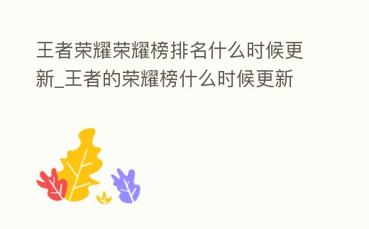 王者榮耀榮耀榜排名什么時候更新_王者的榮耀榜什么時候更新