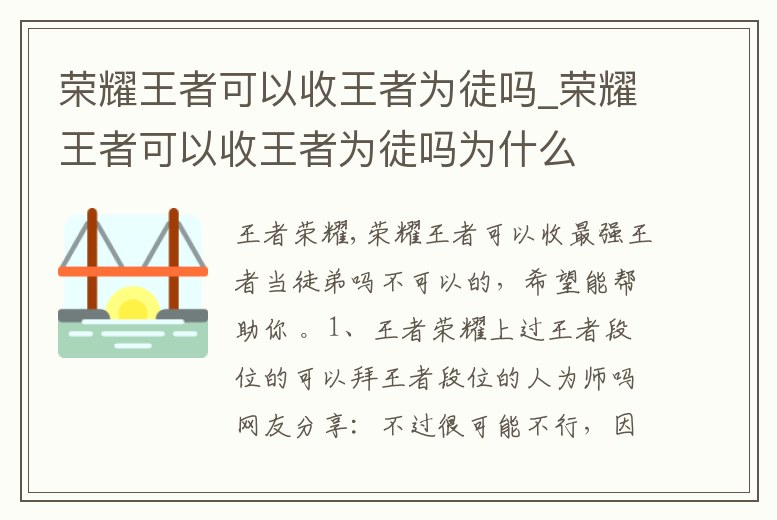 榮耀王者可以收王者為徒嗎_榮耀王者可以收王者為徒嗎為什么