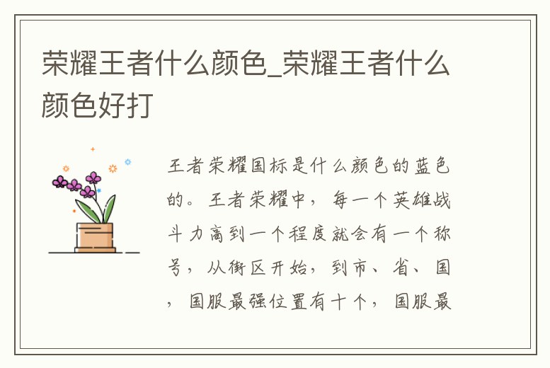 榮耀王者什么顏色_榮耀王者什么顏色好打