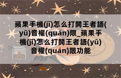 蘋果手機(jī)怎么打開王者語(yǔ)音權(quán)限_蘋果手機(jī)怎么打開王者語(yǔ)音權(quán)限功能