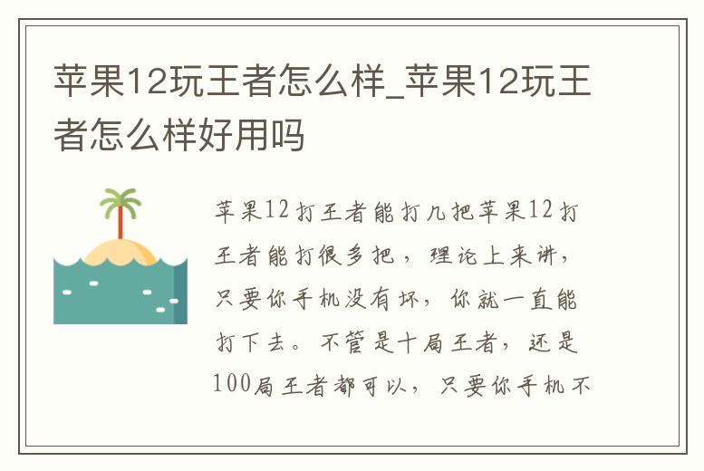 蘋果12玩王者怎么樣_蘋果12玩王者怎么樣好用嗎