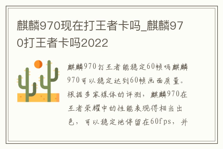 麒麟970現在打王者卡嗎_麒麟970打王者卡嗎2022