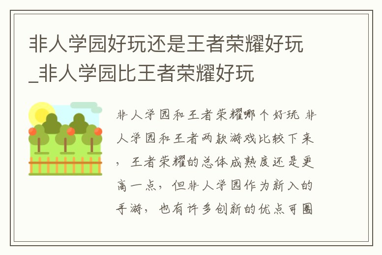 非人學園好玩還是王者榮耀好玩_非人學園比王者榮耀好玩