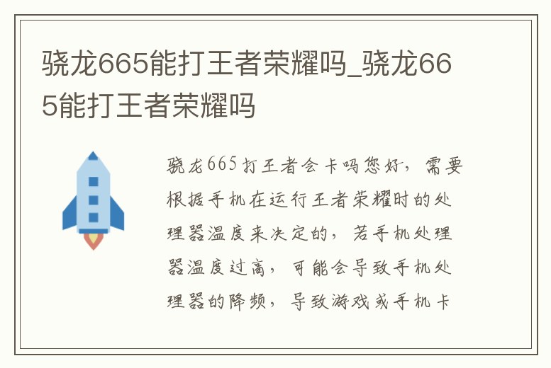 您好,需要根據手機在運行王者榮耀時的處理器溫度來決定的,若手機處理器溫度過高,可能會導致手機處理器的降頻,導致游戲或手機卡頓,反應緩慢,跟不上操作,發出噪音,等,一般來說665這樣的中低端處理器的運算是遠遠不夠的。