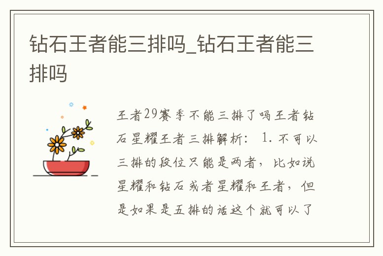 鉆石王者能三排嗎_鉆石王者能三排嗎