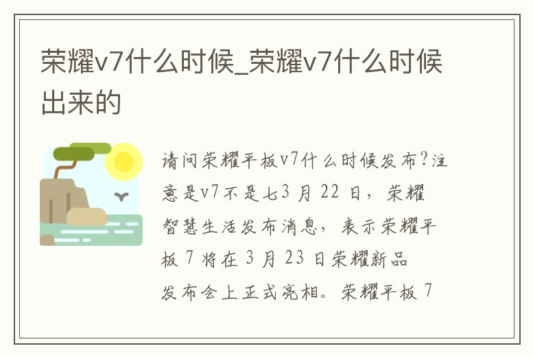 請(qǐng)問榮耀平板v7什么時(shí)候發(fā)布?注意是v7不是七