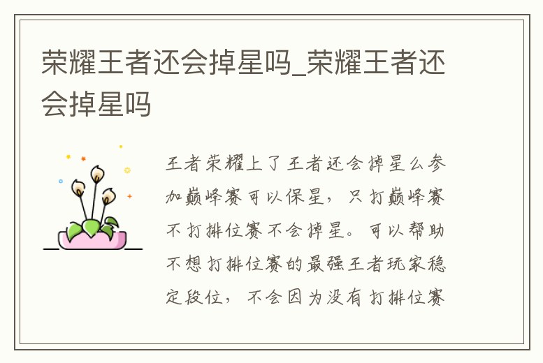 - 榮耀王者還會(huì)掉星嗎_榮耀王者還會(huì)掉星嗎