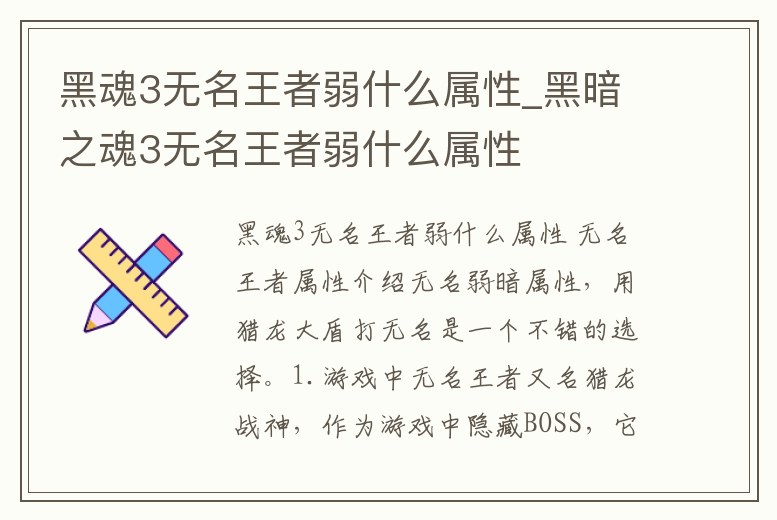 黑魂3無名王者弱什么屬性_黑暗之魂3無名王者弱什么屬性