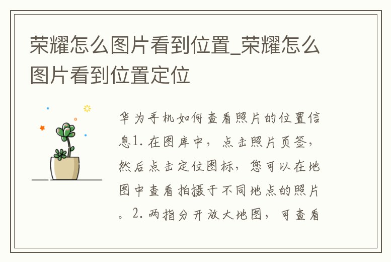 - 榮耀怎么圖片看到位置_榮耀怎么圖片看到位置定位