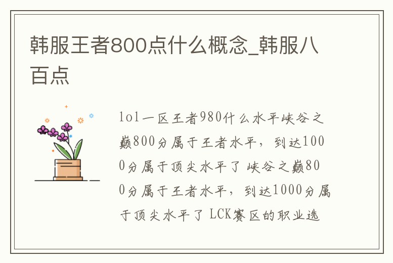 峽谷之巔800分屬于王者水平,到達1000分屬于頂尖水平了 峽谷之巔800分屬于王者水平,到達1000分屬于頂尖水平了 LCK賽區的職業選手Rank分人均王者800點,韓服排位真的很重要嗎?韓服作為頂尖是LOL玩家服務器,許多職業選手與頂尖玩。