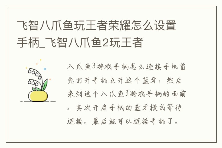 八爪魚3游戲手柄怎么連接手機