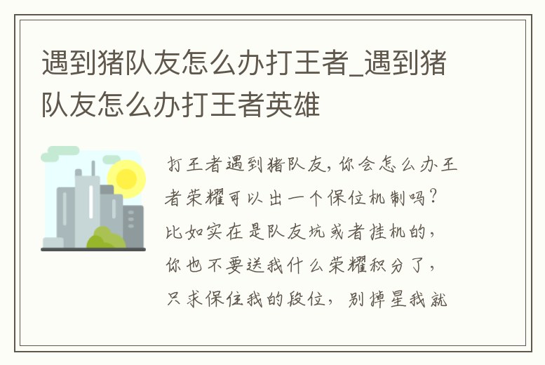 遇到豬隊友怎么辦打王者_遇到豬隊友怎么辦打王者英雄