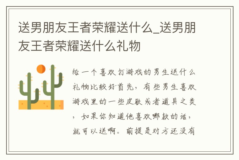 送男朋友王者榮耀送什么_送男朋友王者榮耀送什么禮物