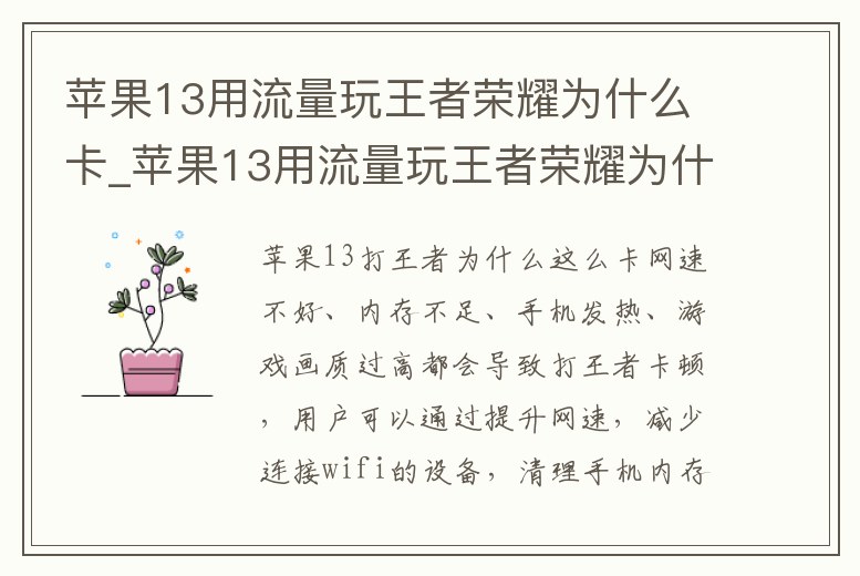 蘋果13用流量玩王者榮耀為什么卡_蘋果13用流量玩王者榮耀為什么卡了