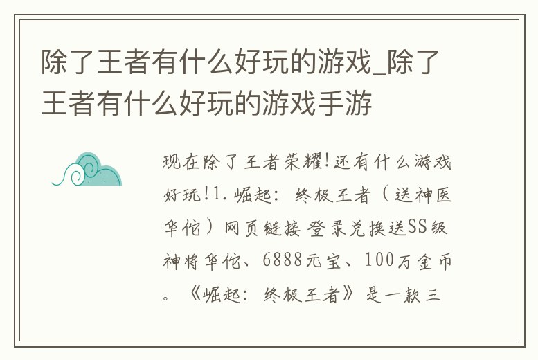 除了王者有什么好玩的游戲_除了王者有什么好玩的游戲手游