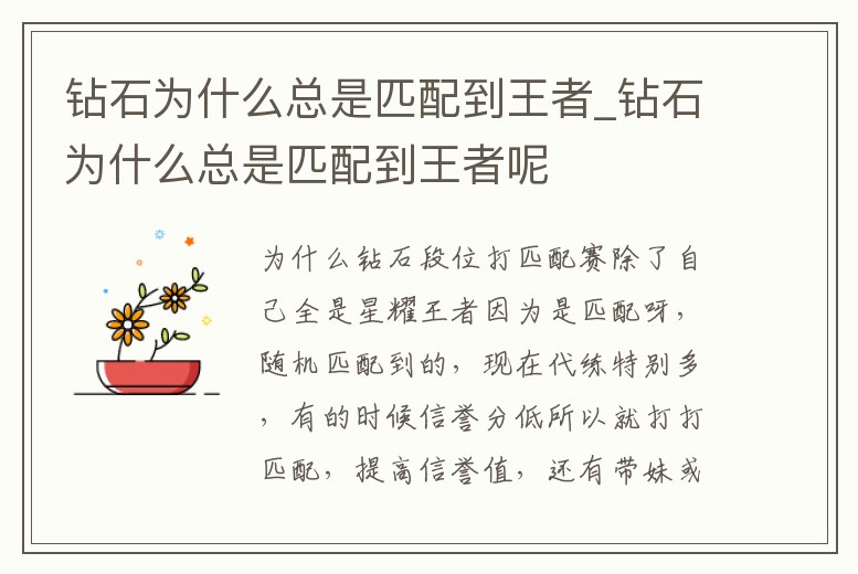 鉆石為什么總是匹配到王者_鉆石為什么總是匹配到王者呢
