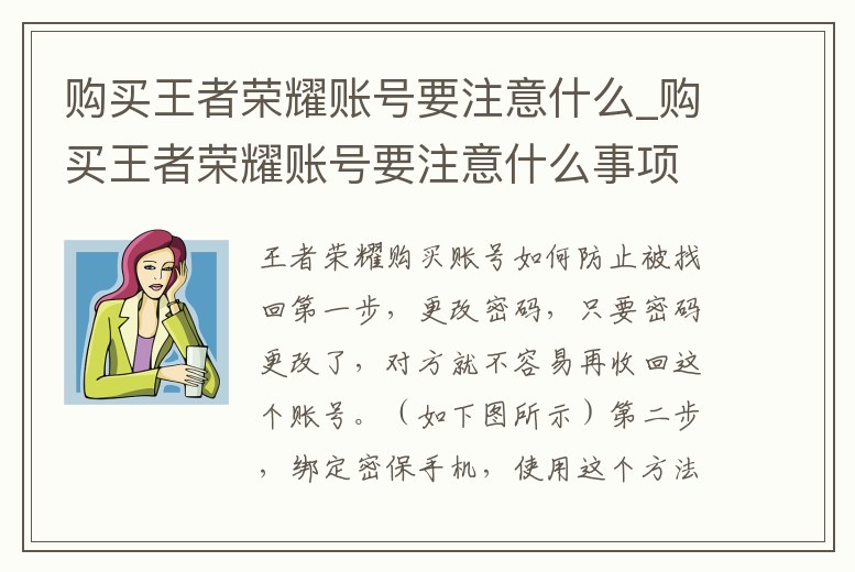 注意賬號綁定。在購買前請務必通過客服與賣家溝通,清空好友。此外,綁定了郵箱和財付通的賬號也要盡量避開,綁定的郵箱可以通過設置的郵箱獨立密碼找回,財付通通過一些手段也可以進行找回。i不要私下交易購買。不要提。