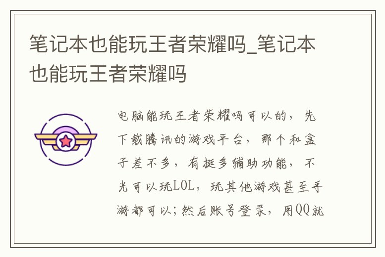 筆記本也能玩王者榮耀嗎_筆記本也能玩王者榮耀嗎