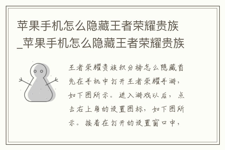 - 蘋果手機怎么隱藏王者榮耀貴族_蘋果手機怎么隱藏王者榮耀貴族等級