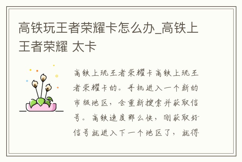 高鐵玩王者榮耀卡怎么辦_高鐵上王者榮耀 太卡