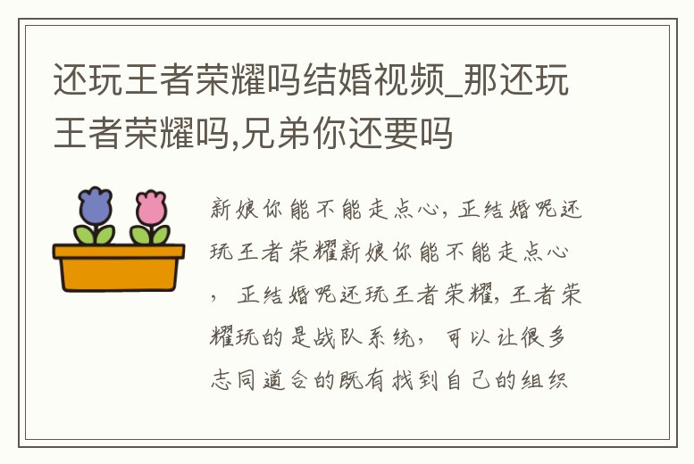 還玩王者榮耀嗎結婚視頻_那還玩王者榮耀嗎,兄弟你還要嗎