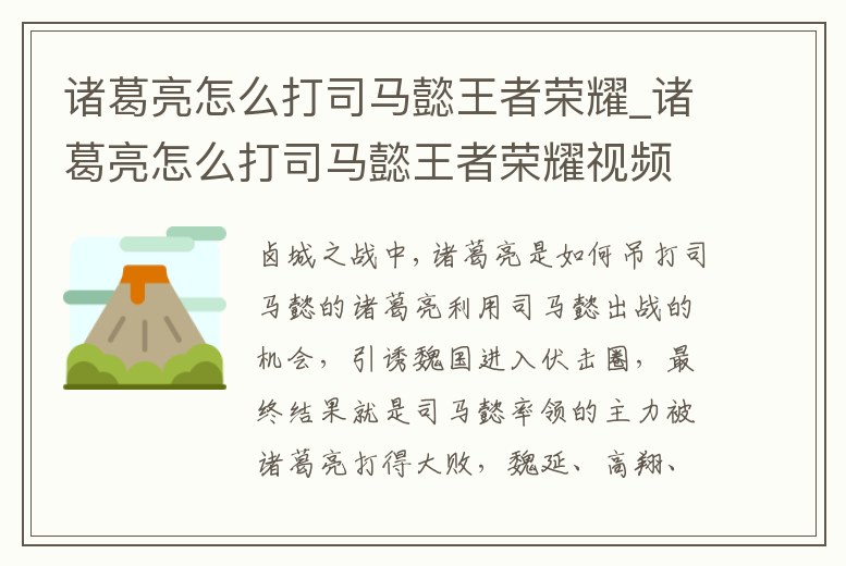 諸葛亮怎么打司馬懿王者榮耀_諸葛亮怎么打司馬懿王者榮耀視頻