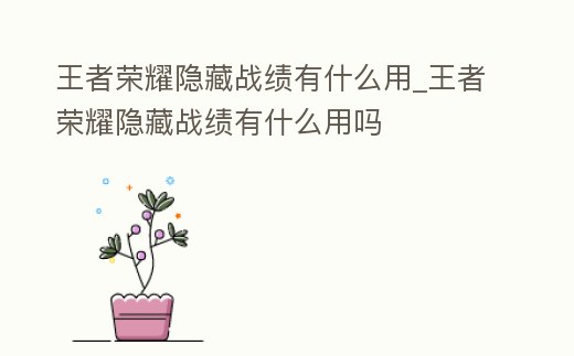 王者榮耀隱藏戰績有什么用_王者榮耀隱藏戰績有什么用嗎