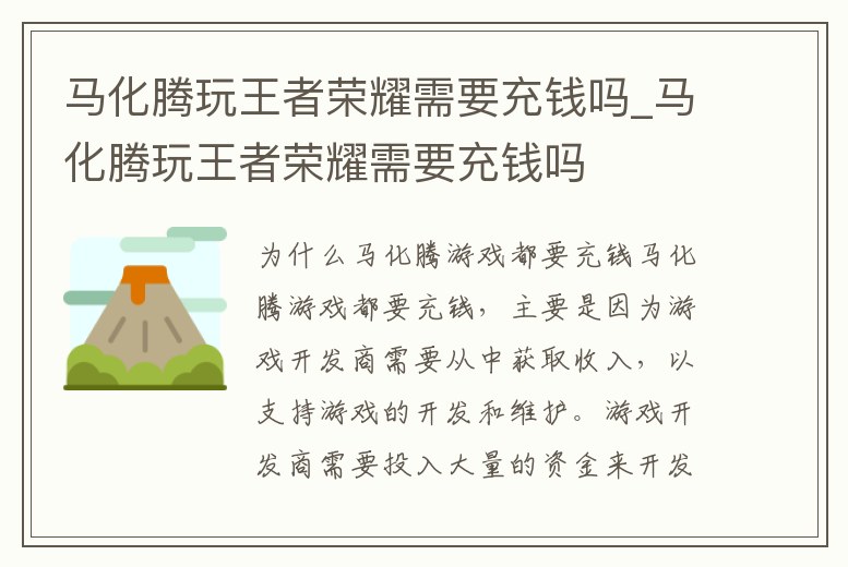 馬化騰玩王者榮耀需要充錢嗎_馬化騰玩王者榮耀需要充錢嗎