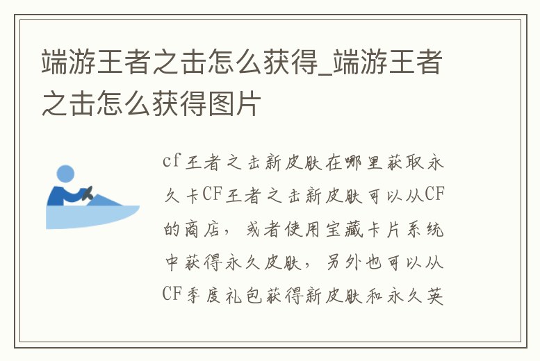 端游王者之擊怎么獲得_端游王者之擊怎么獲得圖片