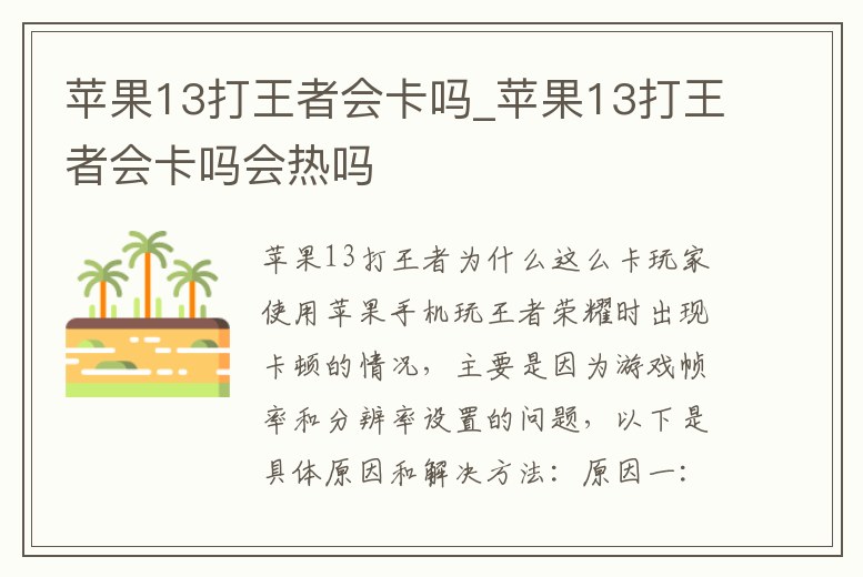 蘋果13打王者會(huì)卡嗎_蘋果13打王者會(huì)卡嗎會(huì)熱嗎