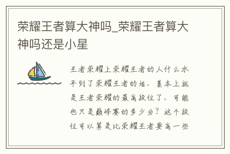 榮耀王者算大神嗎_榮耀王者算大神嗎還是小星